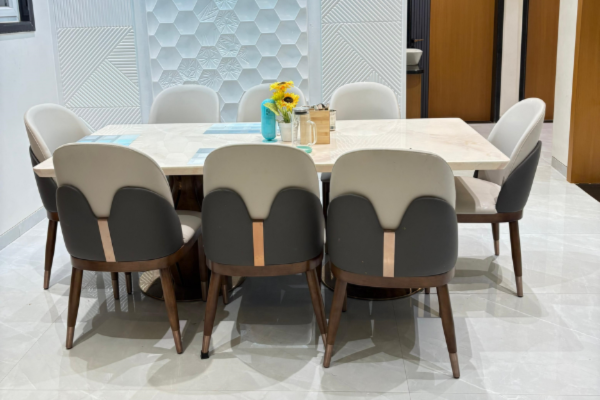 Dining Area 🍷 An exquisite dining experience begins with a beautifully designed space that fosters connection and conversation. Our dining areas combine comfort, elegance, and practicality, ensuring every meal feels special. From cozy family dinners to grand gatherings, the ambiance enhances every moment.
